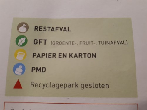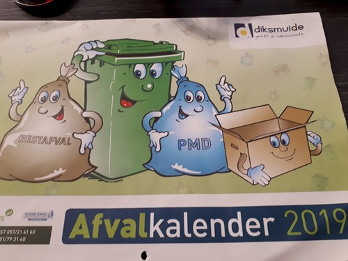 De afvalkalender krijg je in het begin van het jaar in je brievenbus.